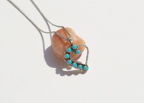 「ズニ族 ビンテージ ターコイズプチポイント オープンハートペンダントトップ」 です。