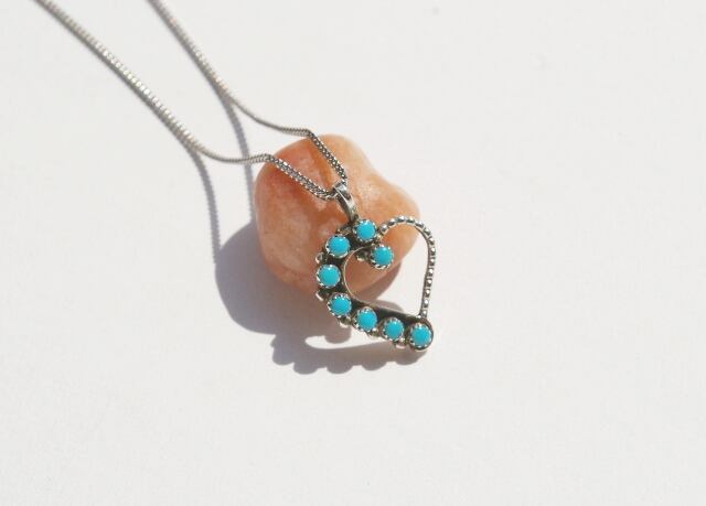 ズニ族 ビンテージ ターコイズプチポイント オープンハートペンダントトップ【送料無料】